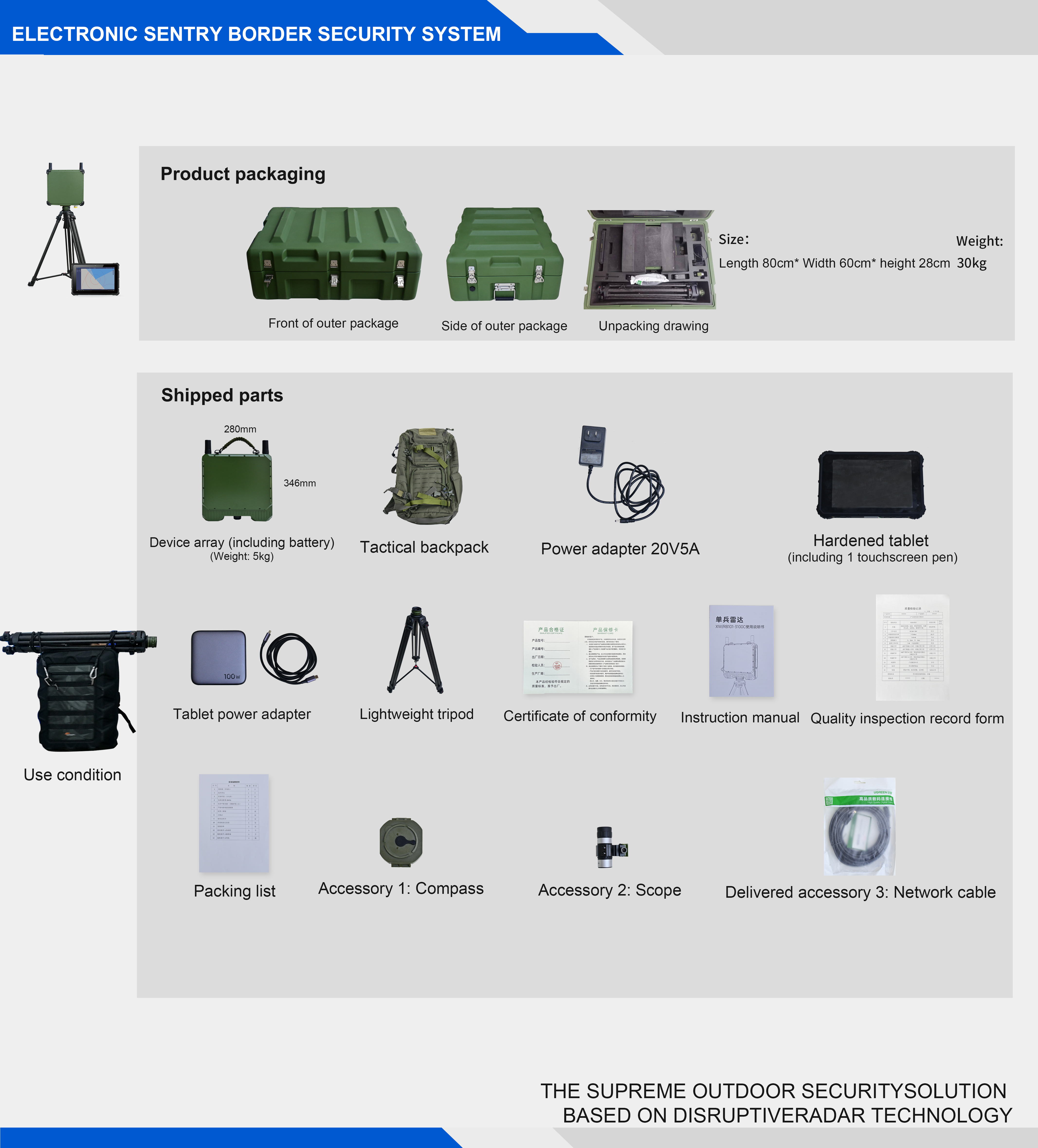 The unattended electronic sentinel consists of detection equipment, aggregation devices, and mobile terminals. It is an intelligent security system integrating detection, perception, and response. It features low power consumption, no reliance on external support, long standby time, self-wake-up, rapid deployment, high reliability, and concealment. Deployed in key control areas such as mountain passes, channels, and uninhabited islands, it is used to prevent illegal border crossings, smuggling, infiltration, and other disruptive activities.