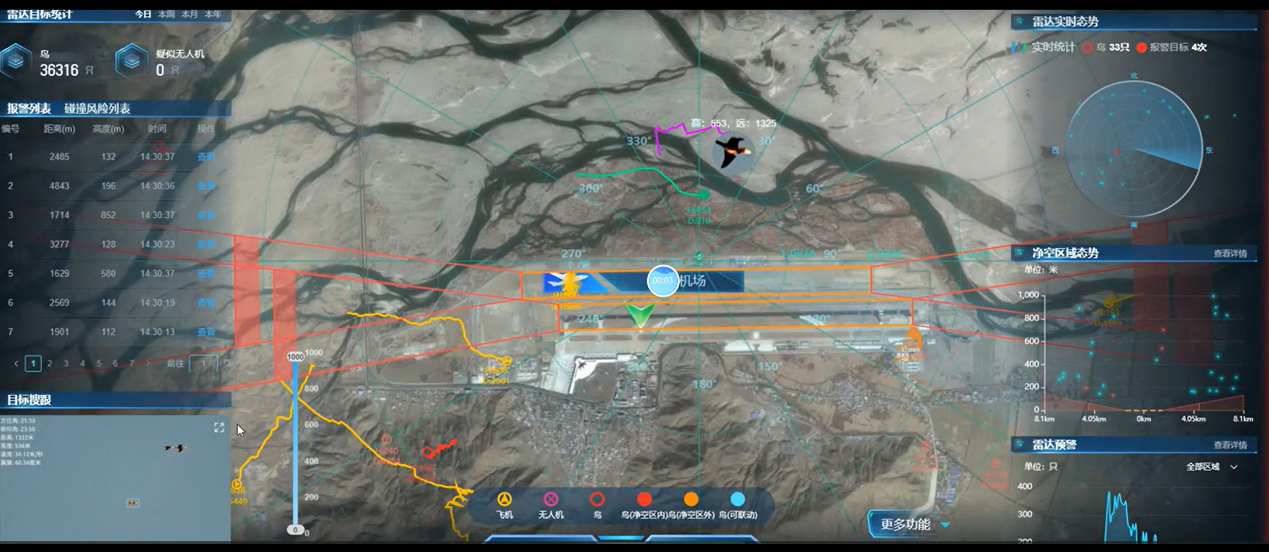 The continuous wave radar transmits uninterrupted signals, and there is no problem of large short-range blind spots of pulsed radar. In the vicinity of the airport, real-time and continuous monitoring of birds and small UAVs close to the runway can be realized, and the dynamic changes of the target can be accurately captured. It can automatically track more than 500 batches of targets at the same time and output high-precision position information.